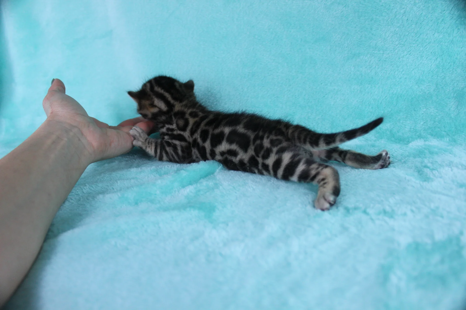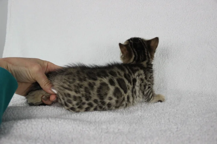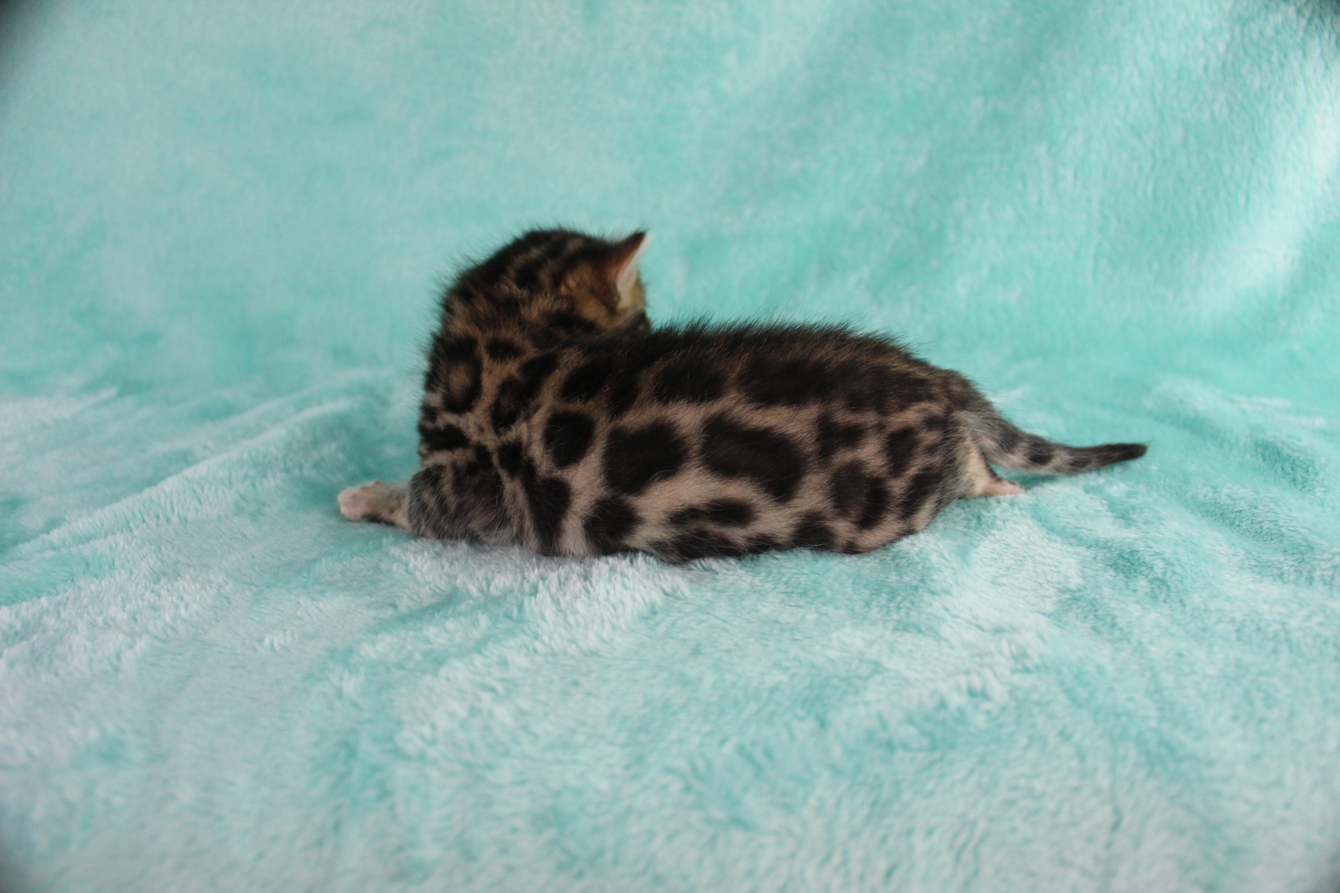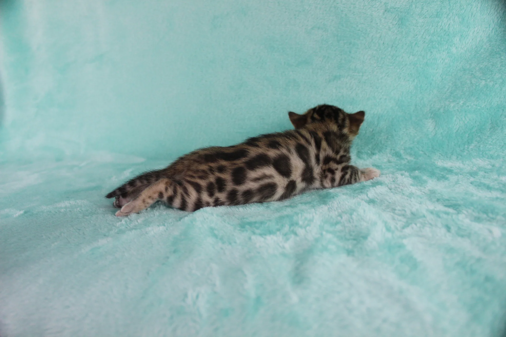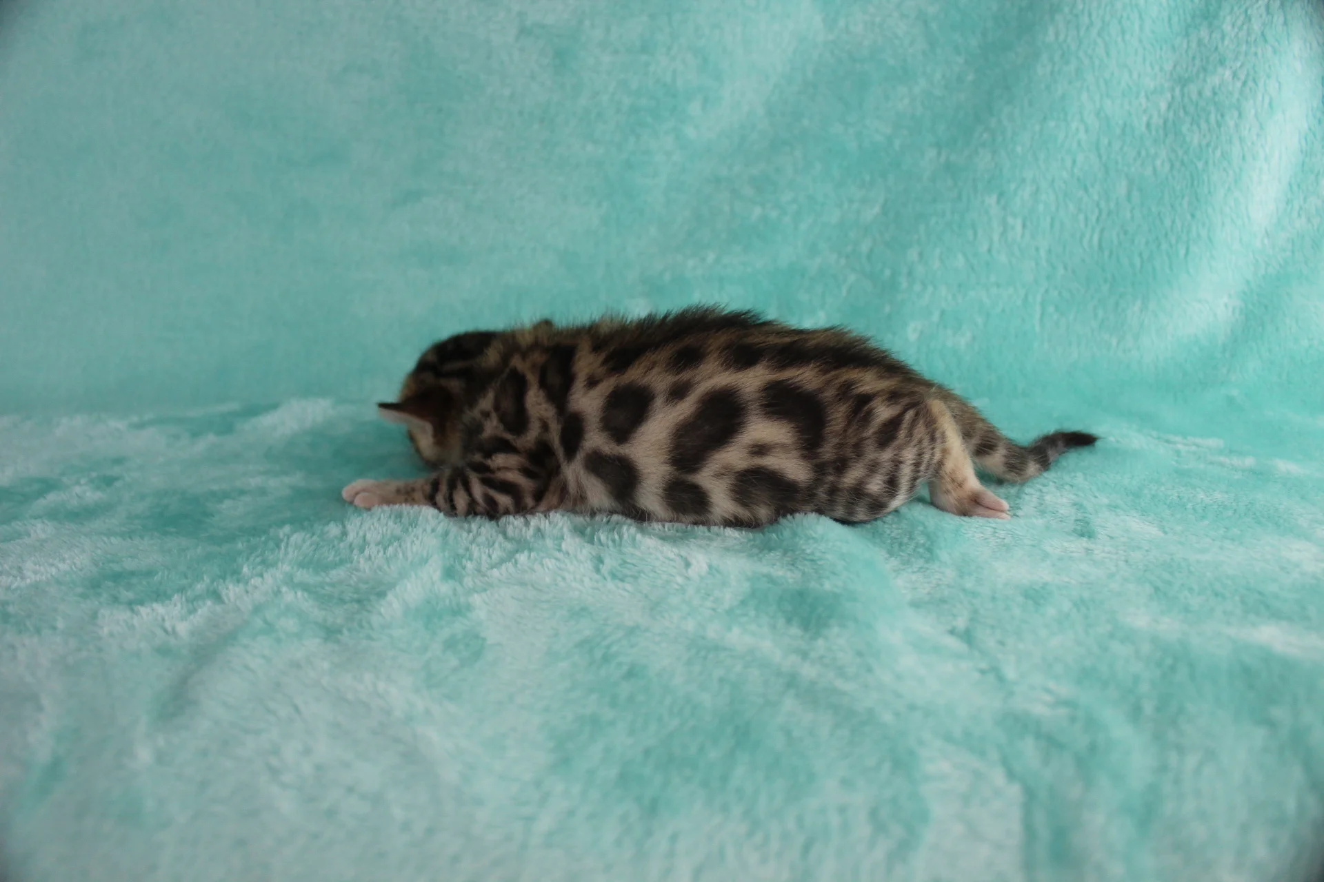 Chrys (CH Library Chrysanthemum of A-Kerr's) and Ryder (RW SGC AC Speakeasy CowboysLastRide of A-Kerr's) have welcomed 4 gorgeous rosetted babies. This is a repeat of last year’s gorgeous litter, and kittens are no less adorable or amazing! Born on December 9th, they will be ready for their forever homes around mid March.