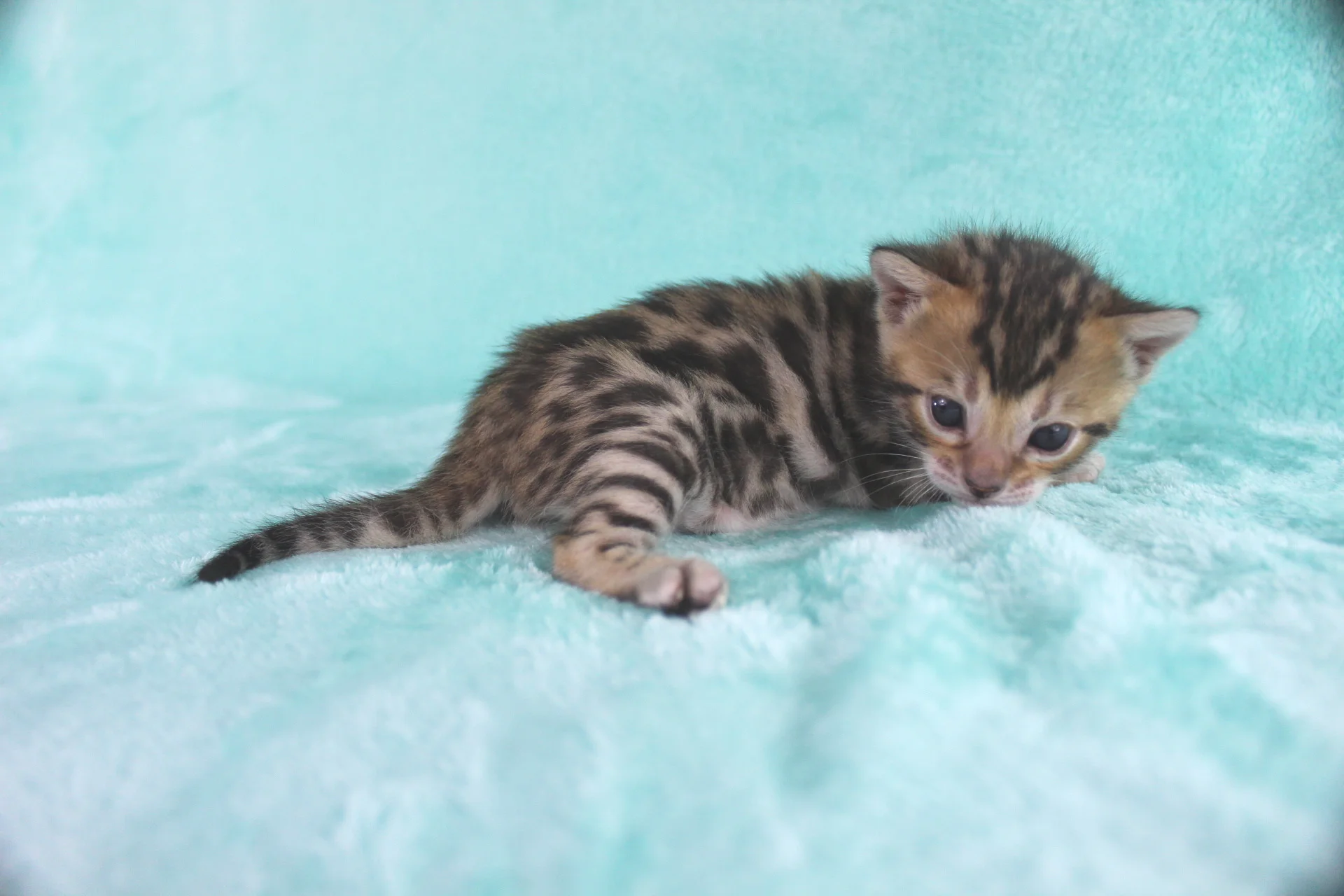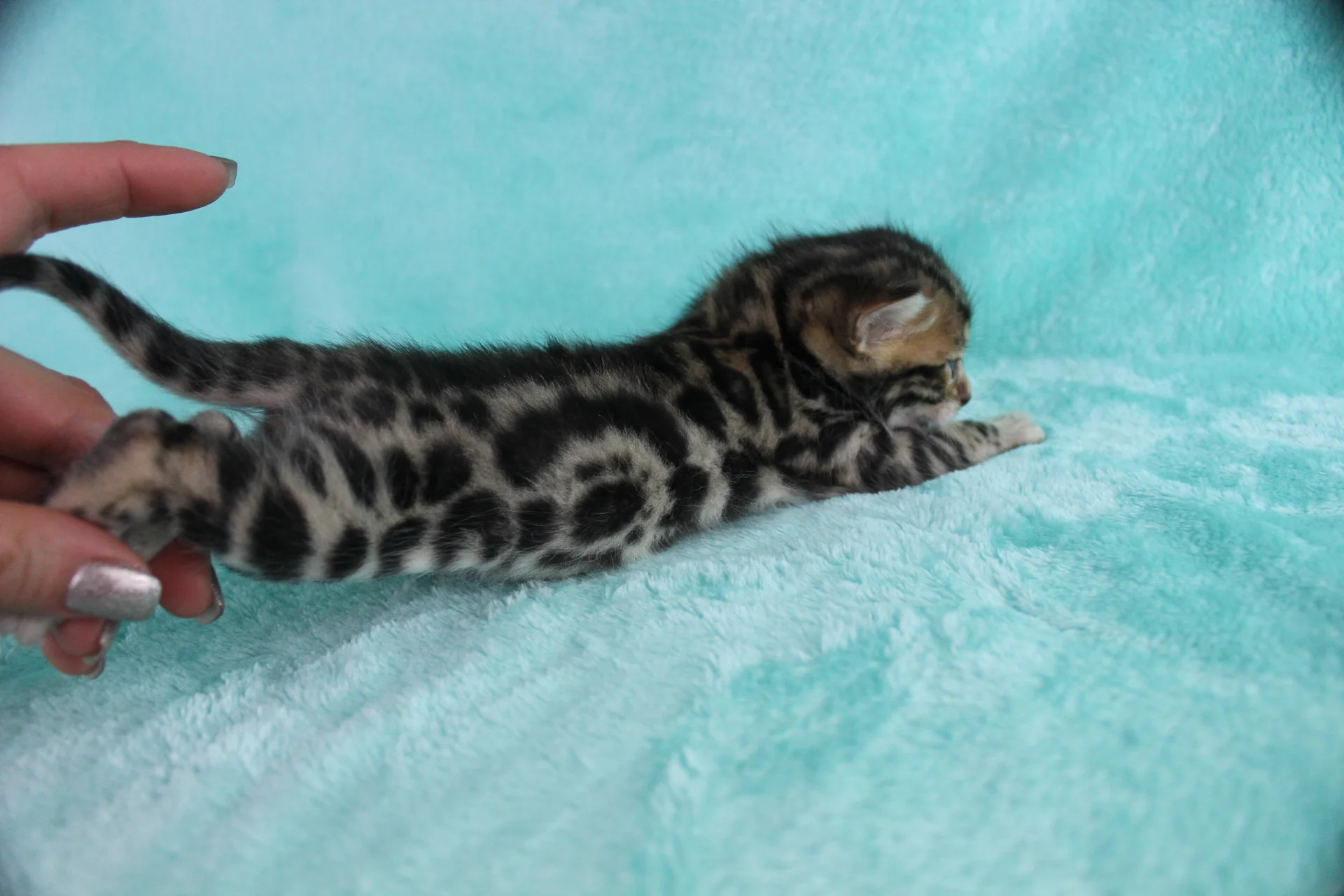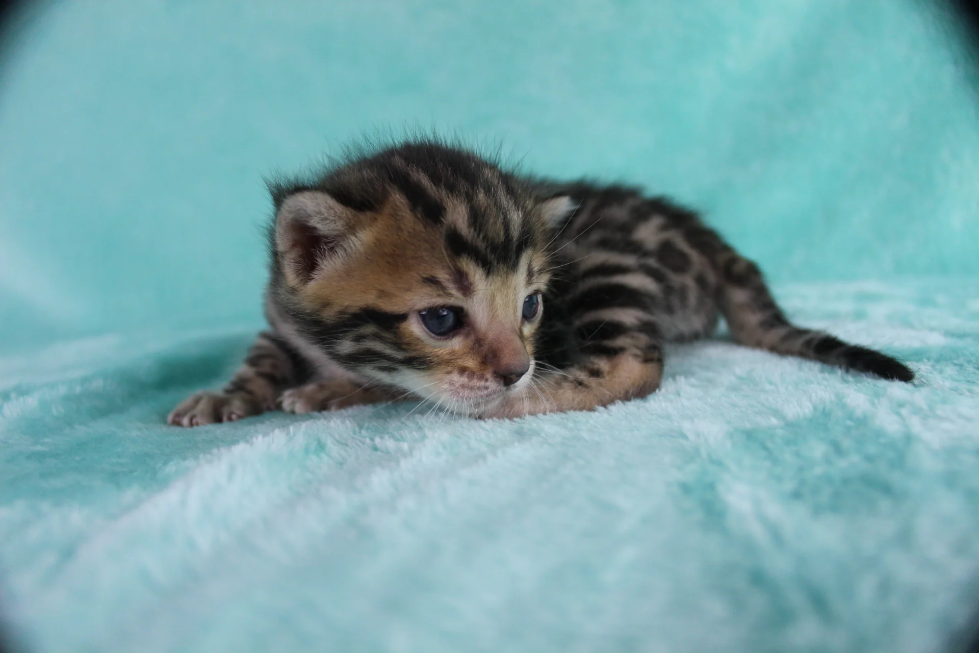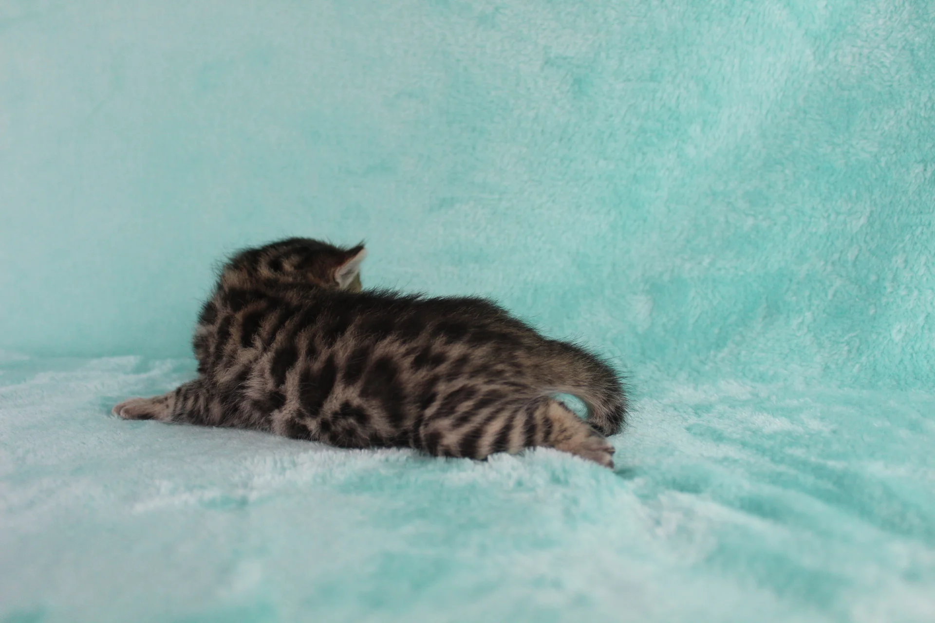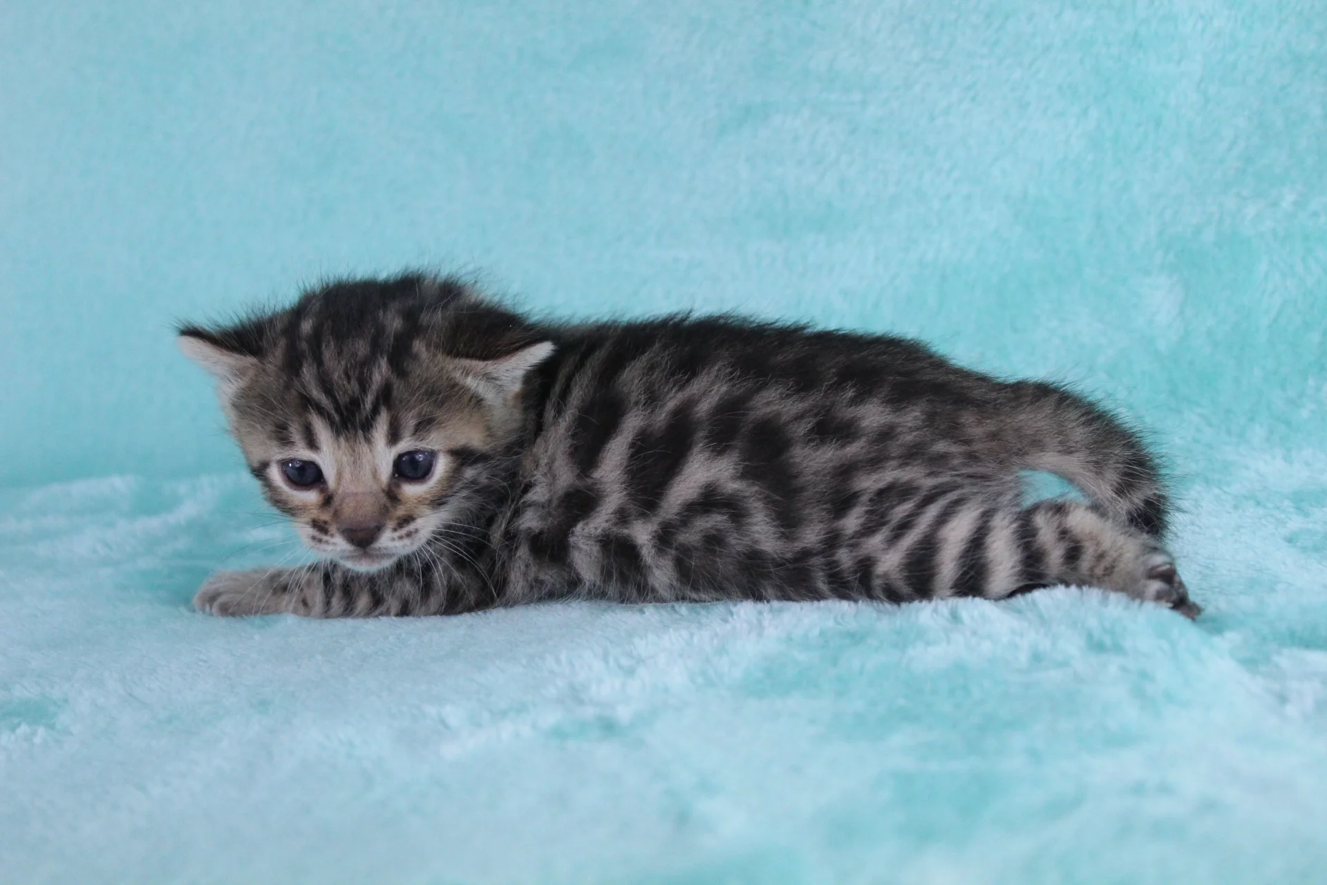 Chrys (CH Library Chrysanthemum of A-Kerr's) and Ryder (RW SGC AC Speakeasy CowboysLastRide of A-Kerr's) have welcomed 4 gorgeous rosetted babies. This is a repeat of last year’s gorgeous litter, and kittens are no less adorable or amazing! Born on December 9th, they will be ready for their forever homes around mid March.