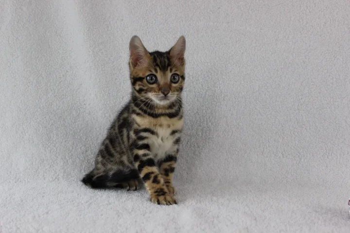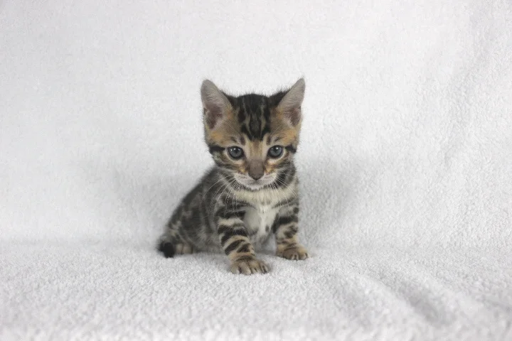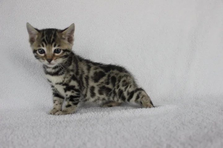 Chrys Female 1 is unglittered, but a darkly marked beauty with a wild face and a tawny background like her sire. She is a big girl! Available to the waiting list