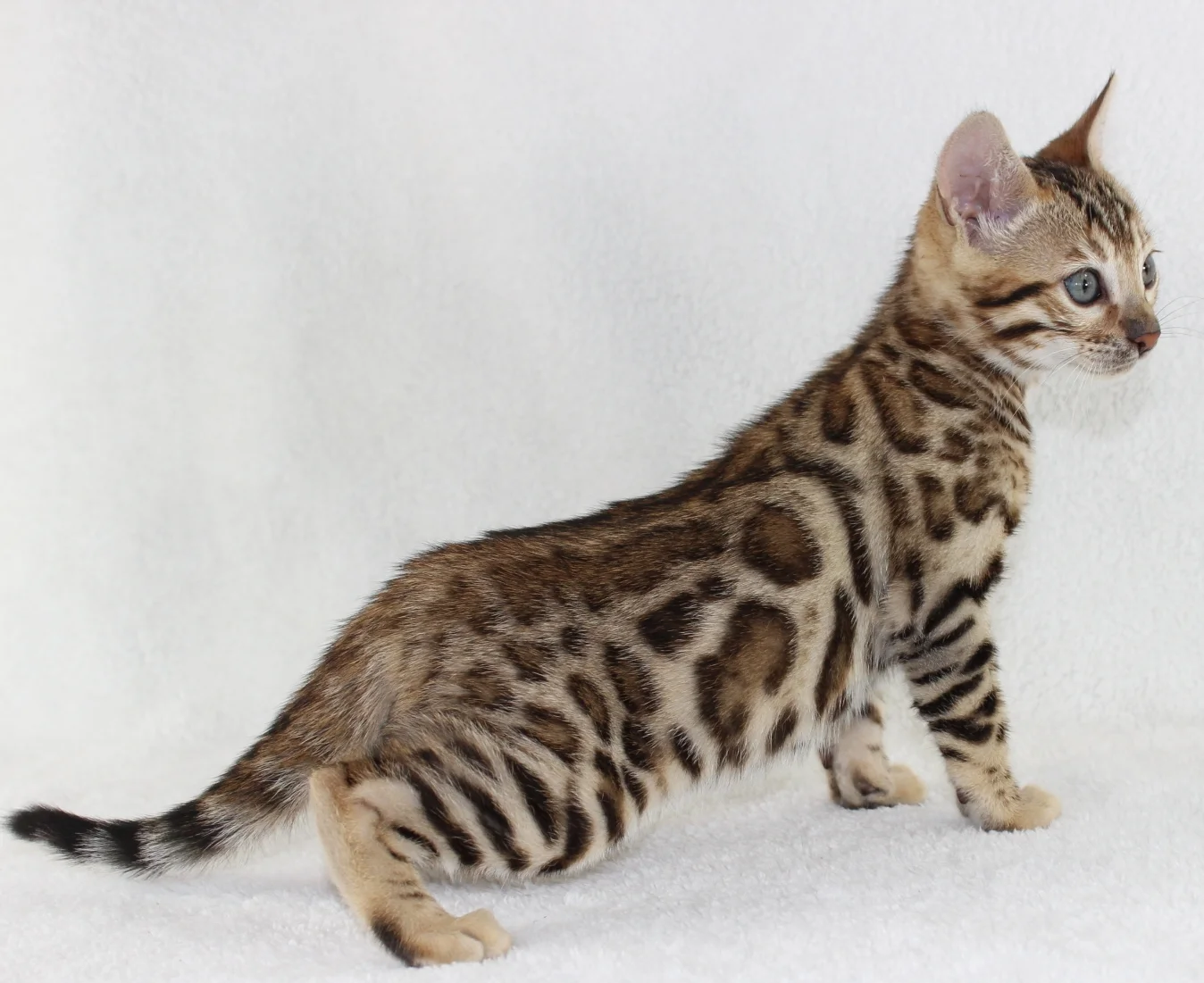 A-Kerr's Flying Phoenix is the flashy mum to these babies while our RW SGC AC Speakeasy's CowboysLastRide of A-Kerr's is the sire. Both parents are friendly loving cats and I hope the kittens combine the coat texture and clarity of Phoenix with Ryder's wild good looks and excellent structure. There are three boys, all spotted, and two girls, both marbled. Born 7.20.17, this litter has been hand raised as Phoenix really only had the capability of nursing two kittens. Their personalities are already adorable!